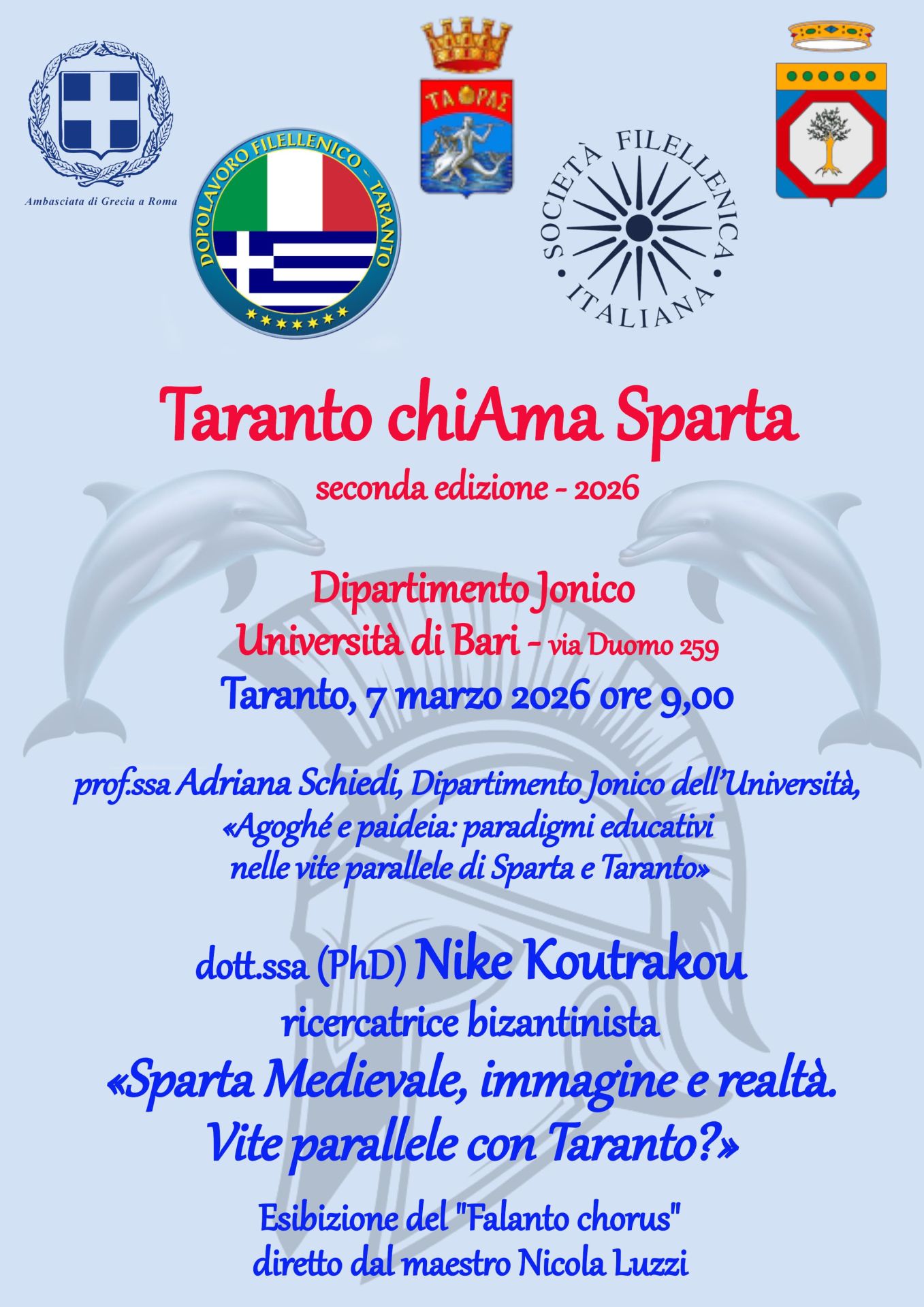 Η δεύτερη έκδοση της εκδήλωσης «Taranto chiAma Sparta» θα πραγματοποιηθεί στις 7 Μαρτίου 2026 στην Aula Magna του Πανεπιστημίου στην Παλιά Πόλη του Τάραντα.